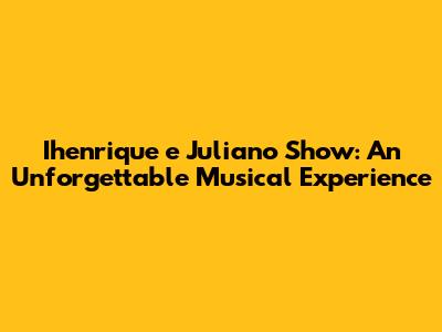 Ihenrique E Juliano Show: Your Ultimate Guide
