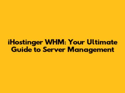 IHostinger WHM: Your Guide To Server Management