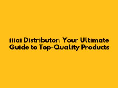 Iiiai Distributor: Your Guide To Top-Quality Products