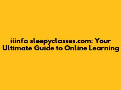 Iiinfo Sleepyclasses.com: Your Guide To Online Learning
