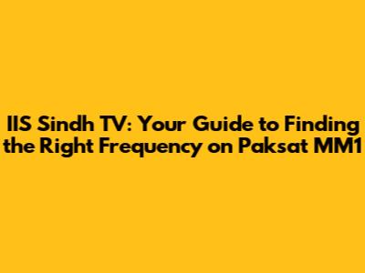 Finding the correct frequency for IIS Sindh TV on Paksat MM1 might seem daunting at first, but with the right information and a little patience, you can get it done. Remember to double-check your information, follow the steps carefully, and don't be afraid to seek help if you need it. Happy viewing, and enjoy IIS Sindh TV!