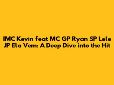 Let's talk about the banger that's been making waves: IMC Kevin feat MC GP Ryan SP Lele JP Ela Vem. This track is more than just a catchy tune; it's a whole vibe, encapsulating a unique blend of musical styles and lyrical themes that resonate with a broad audience. If you haven't heard it yet, you're missing out! We're going to break down why this song is so popular, diving into each artist's contribution and exploring the elements that make it a certified hit. From the infectious beats to the memorable lyrics, there's a lot to unpack, so buckle up and get ready to explore the magic behind "Ela Vem."