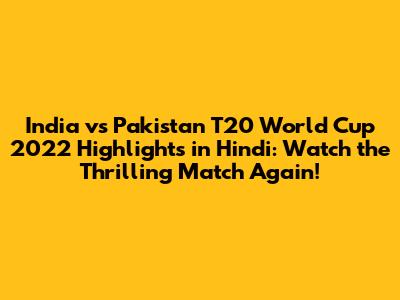 • YouTube: Many sports channels and content creators upload highlights on YouTube. You can search for "India vs Pakistan T20 World Cup 2022 highlights Hindi" to find various videos.