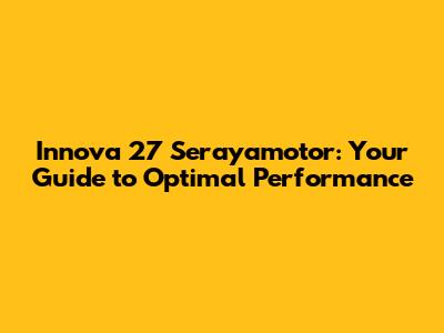 Innova 27 Serayamotor: Your Guide To Optimal Performance