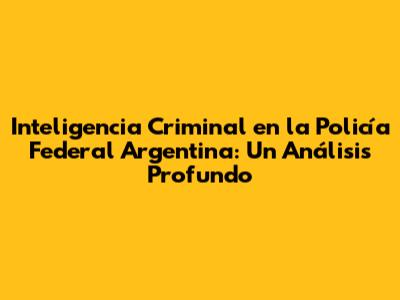 Inteligencia Criminal En La Policía Federal Argentina