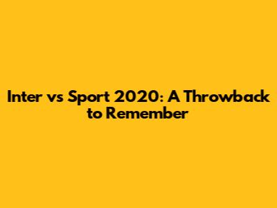 Inter Vs Sport 2020: A Throwback To Remember
