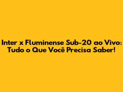 Inter X Fluminense Sub-20: Onde Assistir Ao Vivo E Não Perder Nada!