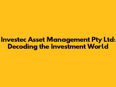 Hey everyone, let's dive into the fascinating world of Investec Asset Management Pty Ltd! If you're looking to grow your wealth, secure your financial future, or simply understand how your money can work harder, then you're in the right place. We're going to break down everything you need to know about Investec Asset Management, their services, their approach to investing, and how they can potentially help you achieve your financial goals. Get ready for a comprehensive guide that's designed to be easy to understand, even if you're a complete beginner in the investment game.