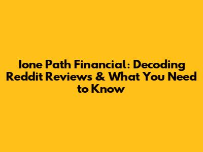 Ione Path Financial: Reddit Reviews & Insights