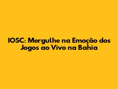 IOSC: Jogos Ao Vivo E Emoção Na Bahia