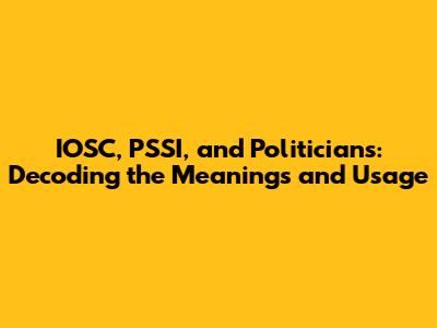 IOSC, PSSI, And Politicians: Decoding The Meanings And Usage
