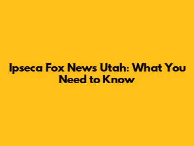 Ipseca Fox News Utah: What You Need To Know