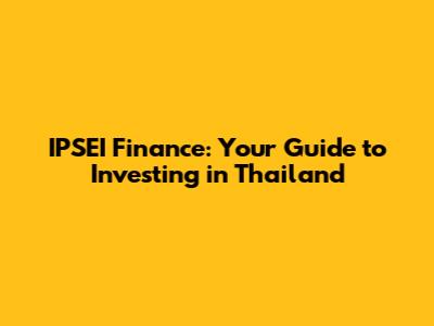 IPSEI Finance: Your Guide To Investing In Thailand