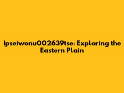 Ipseiwonu002639tse: Exploring The Eastern Plain