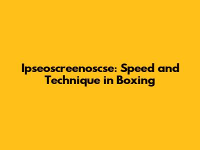 Ipseoscreenoscse: Speed And Technique In Boxing