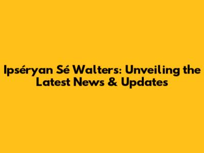 Ipséryan Sé Walters: Unveiling The Latest News & Updates