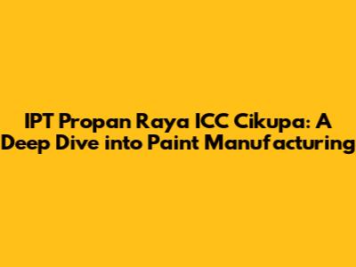 Hey there, paint enthusiasts and industry insiders! Ever wondered about the magic behind those vibrant hues that adorn our walls, vehicles, and countless other surfaces? Well, let's dive headfirst into the fascinating world of IPT Propan Raya ICC Cikupa, a key player in the paint manufacturing scene. This article is your comprehensive guide to understanding this crucial facility, exploring its operations, and appreciating its significant role in the paint industry. We'll break down everything from the raw materials used to the final product, giving you an insider's view of how paint is made and why IPT Propan Raya ICC Cikupa is a name to remember.