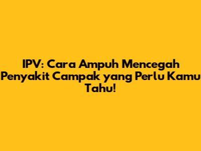 Guys, mari kita bahas sesuatu yang penting banget, yaitu IPV (Inactivated Polio Vaccine) dan hubungannya dengan penyakit campak. Pasti pada penasaran kan, kenapa sih IPV ini penting dan gimana caranya bisa melindungi kita dari campak? Nah, di artikel ini, kita akan kupas tuntas semuanya! Jadi, siap-siap buat dapat info yang bermanfaat ya!