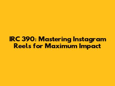 IRC 390: Mastering Instagram Reels For Maximum Impact
