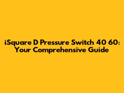 Before we get into the specifics of the 40 60 model, let’s understand what a pressure switch does in general. A pressure switch is a device that monitors the pressure of a fluid (typically air or water) and opens or closes an electrical circuit when a certain pressure threshold is reached. This makes it a crucial component in many systems, ensuring that pressure levels stay within safe and optimal ranges. The iSquare D pressure switch, manufactured by Schneider Electric (formerly Square D), is known for its reliability and durability, making it a popular choice for various industrial and residential applications.