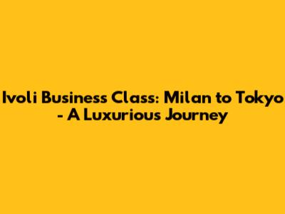 Ivoli Business Class: Milan To Tokyo - A Luxurious Journey