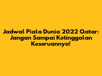 Cara Mendapatkan Informasi Jadwal: Informasi jadwal pertandingan Piala Dunia 2022 dapat diperoleh dari berbagai sumber resmi, seperti situs web FIFA, stasiun televisi resmi yang menyiarkan pertandingan, dan platform streaming olahraga. Selain itu, banyak juga media olahraga dan portal berita yang menyajikan jadwal pertandingan secara lengkap dan ter-update. Pastikan kalian selalu memantau sumber-sumber terpercaya untuk mendapatkan informasi yang akurat.
