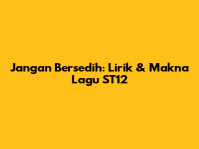 Hai guys! Siapa sih di sini yang nggak kenal ST12? Band legendaris Indonesia ini punya banyak banget lagu hits yang sampai sekarang masih sering kita dengerin. Salah satu lagu yang paling ikonik dan punya makna mendalam adalah "Jangan Bersedih". Lagu ini tuh kayak teman setia buat kita pas lagi galau atau butuh semangat. Yuk, kita kupas tuntas lirik dan makna di balik lagu "Jangan Bersedih" ini, guys! Siap-siap nostalgia dan makin cinta sama ST12!