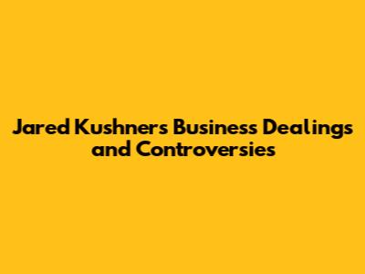 Jared Kushner's Business Dealings And Controversies