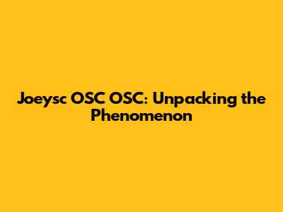 Joeysc OSC OSC: Unpacking The Phenomenon