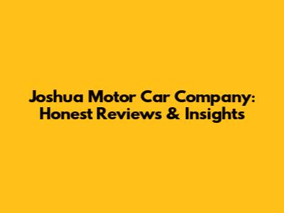 Joshua Motor Car Company: Honest Reviews & Insights
