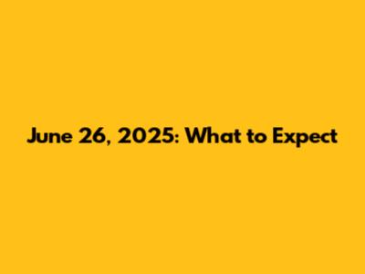 June 26, 2025: What To Expect