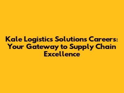 Kale Logistics Solutions: Your Career Path
