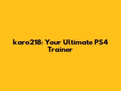 Karo218: Your Ultimate PS4 Trainer