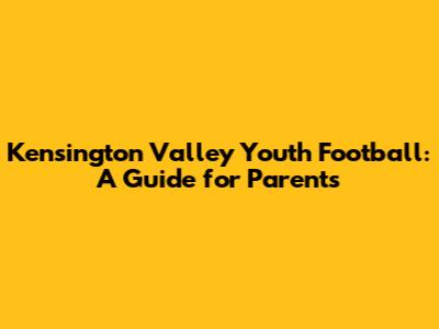 Kensington Valley Youth Football: A Guide For Parents