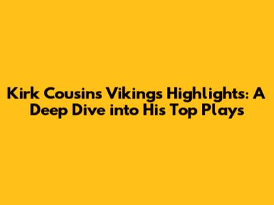 Hey everyone, let's talk about Kirk Cousins and his time with the Minnesota Vikings! For those of you who've been following the NFL, you know that Cousins has had some truly electric moments in purple and gold. We're going to break down some of his absolute best plays, the ones that had us all on the edge of our seats. From pinpoint passes to clutch game-winners, Cousins brought a lot of excitement to U.S. Bank Stadium. So grab your favorite snacks, settle in, and let's relive some of the most memorable Kirk Cousins Vikings highlights.
