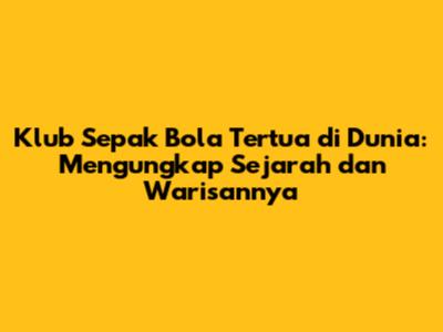 Klub sepak bola tertua di dunia adalah harta karun yang berharga, yang mewakili sejarah dan warisan yang kaya dari olahraga yang kita cintai. Klub-klub ini, dengan sejarah mereka yang panjang dan semangat kompetitif mereka yang tak tergoyahkan, terus menginspirasi dan menghibur penggemar di seluruh dunia.