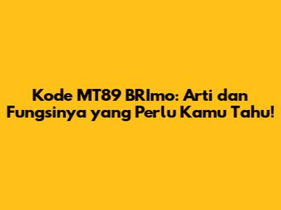 Kode MT89 BRImo: Arti Dan Fungsinya Yang Perlu Kamu Tahu!