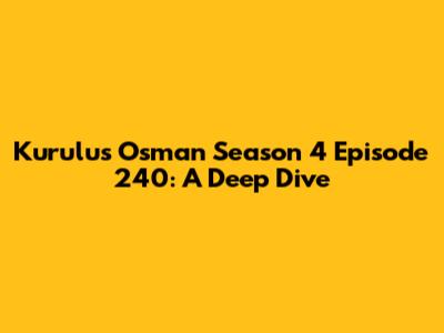 Hey guys! Let's dive deep into the thrilling world of Kurulus Osman Season 4 Episode 240. This episode was packed with action, drama, and those nail-biting moments we've come to expect. We're going to break down the key events, analyze the character developments, and explore the implications for the future of Osman Bey and his burgeoning empire. Get ready for a wild ride!