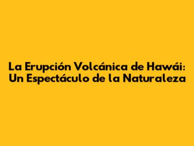La Erupción Volcánica De Hawái: Un Espectáculo De La Naturaleza