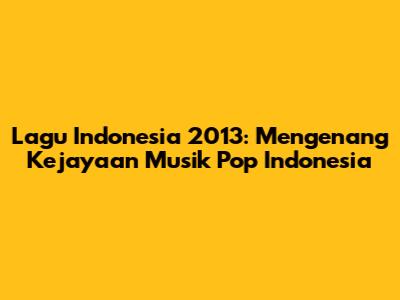 Lagu Indonesia 2013 memang didominasi oleh berbagai single yang berhasil menduduki puncak tangga lagu. Beberapa di antaranya bahkan masih sering diputar di radio dan televisi hingga saat ini. Keberhasilan lagu-lagu ini tentu saja tidak lepas dari kualitas musik, lirik yang menyentuh, serta promosi yang gencar. Para penyanyi dan grup band pada tahun tersebut juga memiliki basis penggemar yang kuat, sehingga setiap karya yang mereka rilis selalu dinanti-nantikan. Yuk, kita simak beberapa lagu Indonesia 2013 yang paling populer dan fenomenal pada masanya.