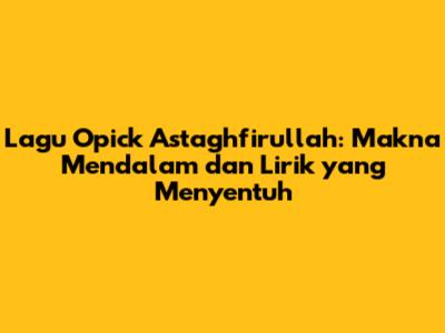 Guys, siapa sih yang nggak kenal sama Opick? Penyanyi religi yang satu ini memang legend banget di Indonesia. Salah satu lagunya yang paling ikonik dan selalu berhasil bikin merinding adalah "Astaghfirullah". Lagu ini bukan sekadar hiburan, tapi lebih dari itu, sebuah pengingat, sebuah doa, dan sebuah cerminan diri buat kita semua. Pernah nggak sih kalian dengerin lagu ini terus tiba-tiba ngerasa "wah, ini gue banget"? Nah, itu dia kekuatan dari lagu "Astaghfirullah". Dengan lirik yang sederhana tapi dalem banget, Opick berhasil menyampaikan pesan tobat dan penyesalan yang universal. Lagu ini cocok banget buat kalian yang lagi butuh pencerahan, lagi ngerasa jauh dari Tuhan, atau sekadar pengen ngingetin diri sendiri buat jadi pribadi yang lebih baik. Dijamin, dengerin "Astaghfirullah" sambil meresapi liriknya bakal bikin hati adem dan nambah semangat buat terus berbuat baik.