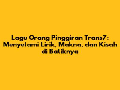 Lagu Orang Pinggiran Trans7 telah menjadi bagian tak terpisahkan dari acara televisi populer di Indonesia. Bagi kalian yang sering menonton Trans7, pasti sudah tidak asing lagi dengan lagu ini. Tapi, tahukah kalian lebih dalam tentang lagu ini? Apa makna di balik liriknya, dan bagaimana lagu ini bisa begitu melekat di hati para pendengar? Artikel ini akan membahas secara mendalam tentang lagu fenomenal ini, mulai dari lirik lagu orang pinggiran trans7, sejarah kemunculannya, makna yang terkandung di dalamnya, hingga dampak sosial yang ditimbulkannya.