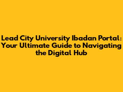 Lead City University Ibadan Portal: Your Ultimate Guide