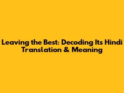 Leaving The Best: Hindi Translation & Meaning