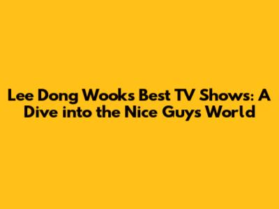 Lee Dong Wook's Best TV Shows: A Dive Into The Nice Guy's World