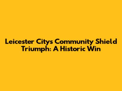 Leicester City's Community Shield Triumph: A Historic Win