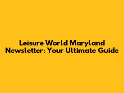 Leisure World Maryland: Stay Up-to-Date Newsletter
