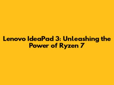 Lenovo IdeaPad 3: Ryzen 7 Powerhouse