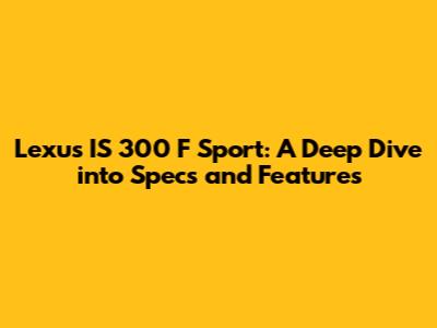 Hey car enthusiasts! Ever wondered about the Lexus IS 300 F Sport specs? Well, buckle up, because we're about to dive deep into everything you need to know about this sporty sedan. We're talking performance, features, and everything in between. Whether you're a seasoned Lexus aficionado or just starting your research, this guide will provide a comprehensive overview of the IS 300 F Sport. Let's get started, shall we?