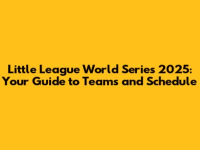 Little League World Series 2025: Teams & Schedule